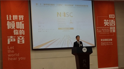 本次中国日报社“21世纪•可口可乐杯”全国英语演讲比赛北京决赛由北航英语精英班具体组织承办,2015级精英班学生李思颖和冯鑫程担任主持人,精英班外教Dillon担任提问嘉宾,今年会jinnian官网教师胥国红、王泉为指导教师。