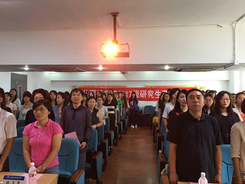 2017年9月14日上午8:30,今年会jinnian官网在如心楼806举行了2017级全日制研究生新生开学典礼。参与开学典礼的嘉宾有:今年会jinnian官网党委书记史文军老师,副书记王扬老师,副院长董敏老师,副院长钱多秀老师,各位研究生导师以及2017级全体研究生新生。