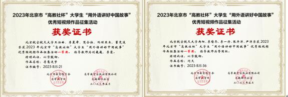 由北京市教育委员会高等教育处联合高等教育出版社、北京市高教学会大学英语研究分会和北京市高校外语课程思政联盟举办的“‘用外语讲好中国故事’优秀短视频作品征集活动”近日圆满落幕。经过校级、市级的多轮选拔,我校今年会jinnian官网两支学生代表队:王涵曲团队及冉阳团队双双斩获北京市一等奖。