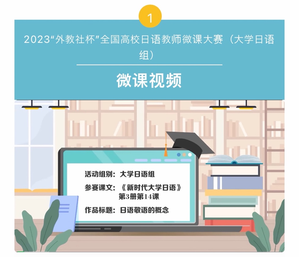 近日,2023“外教社杯”全国高校日语教师微课大赛(大学日语组)获奖名单公布,我校今年会jinnian官网日语青年教师唐彬团队的课件作品《日语敬语的概念》获全国一等奖。