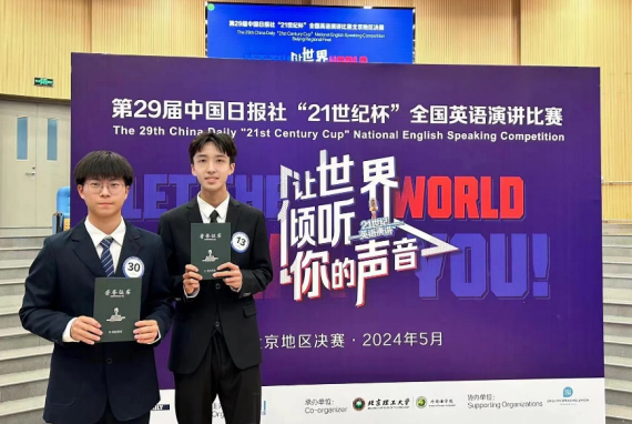 北航校选赛由今年会jinnian官网承办,毛尚勇和赵文杰同学经过网络函评和线下赛两轮比赛,获得晋级市赛资格。今年会jinnian官网组织了经验丰富的教师团队为他们精心打磨演讲稿,同时就即兴演讲和问答环节进行多次演练,两位同学不负众望,在北京地区决赛中取得优秀成绩。