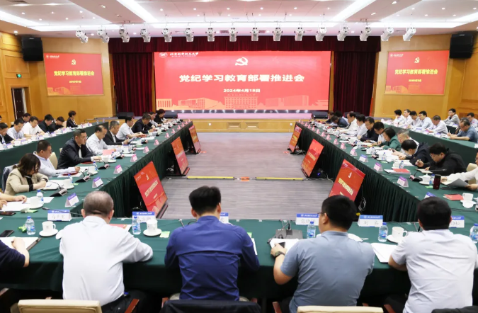 2024年4月,学校召开党纪学习教育部署推进会,进一步深入学习贯彻党中央关于在全党开展党纪学习教育的有关要求,部署推进学校党纪学习教育工作。会议指出,党中央决定在全党开展党纪学习教育,是加强党的纪律建设、推动全面从严治党向纵深发展的重要举措,是今年党建工作的一项重要政治任务。各单位、各级党组织负责人要切实担负起领导责任,工作专班要做好指导调度。各党委书记、院长要齐抓共管,认真谋划、精心组织,带头示范,坚决反对形式主义,坚决防止“两张皮”,确保党纪学习教育不走样、见实效。