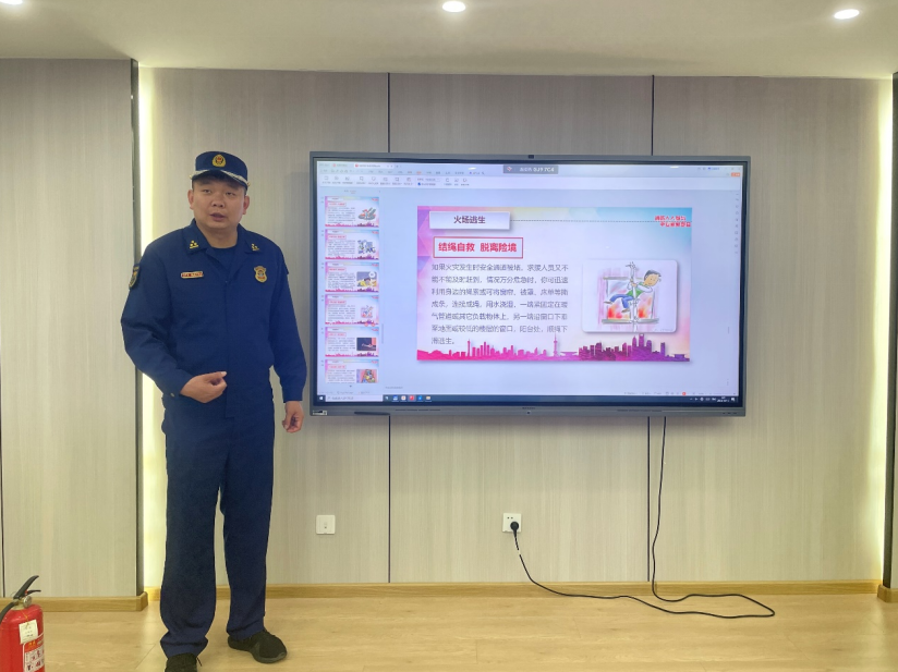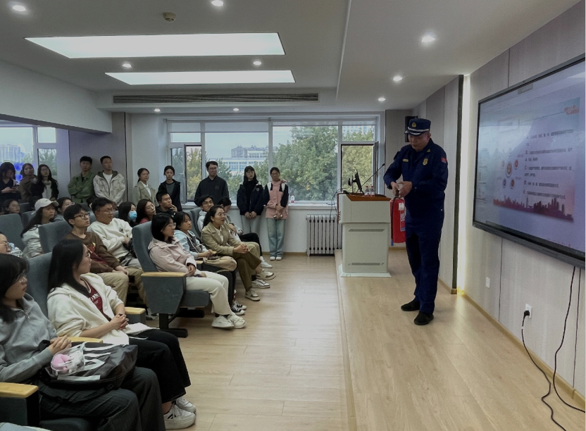 邀请海淀区双榆树消防救援站马站长为全体师生讲授消防知识,涵盖消防安全法规要求、火灾预防的基本概念、灭火基本方法、火灾种类、灭火剂分类、灭火器、消防栓与水袋的使用方法等多个方面的内容,详细讲解了火灾的危害性、预防措施以及火灾发生时的应急处理方法,使学生们对消防安全有了更加直观的认识。