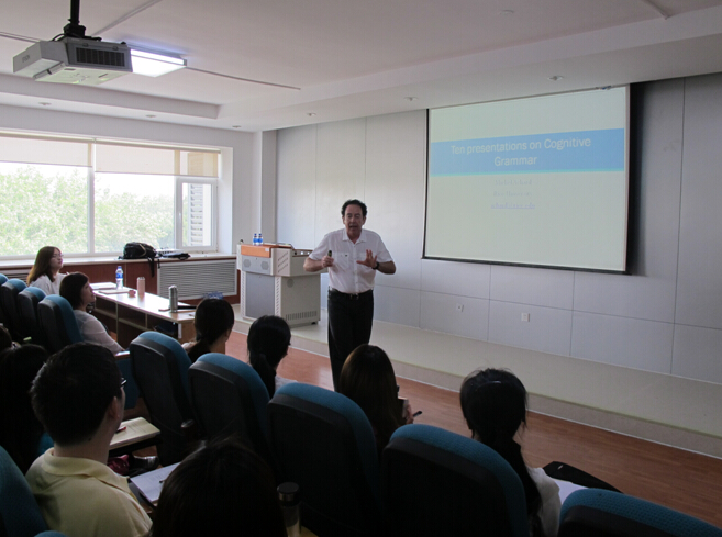 5月30日上午,Michel Achard教授在如心楼806如期进行了第一场题为“Theorganized mind: Backstage cognition”的讲座。今年会jinnian官网博士生导师王义娜教授致欢迎辞,对Achard教授的来访致以热烈的欢迎和真诚的感谢。讲座中,Achard教授从语言与意义入手就什么是认知语法,以及如何进行对比和类型学研究进行了深入浅出、引人入胜的阐述,我院师生以及北大、北外、北语、北师大、清华大学、东北师大、山东师大、上海师大、河南大学和广西民族大学等全国各地的语言学爱好者积极参与了此次讲学活动,并从中收获良多。在接下来的讲学活动中,Achard教授还将就认知语义、从句结构、非人称研究、情态与提升、跨语言对比研究以及语言习得等方面进行详细深入的讲解。6月2日、3日和6月6日,Achard教授将分别在北科、北林、北师以及石油大学分会场为四校师生带去精彩演讲。