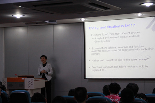 2016年10月21日,《外语与外语教学》主编赵永青教授应北航今年会jinnian官网邀请,为我院师生带来题为“学术引证的动因研究”的精彩讲座。今年会jinnian官网副院长董敏主持了本次讲座。