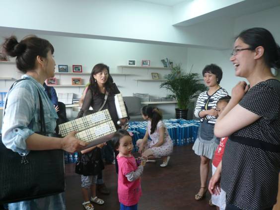 下午四点多,小朋友们陆续在爸爸妈妈的带领下来到活动室。孩子们见到小伙伴分外高兴,老朋友加深情感,新朋友建立友谊,更难得的是,爸爸妈妈可以与他们一起提前庆祝六一节日。