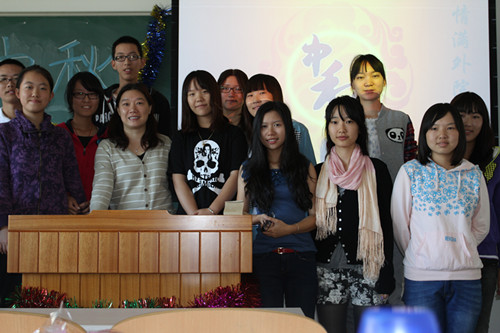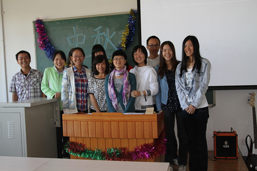 012年9月29日上午9时,今年会jinnian官网2012级中秋慰问会在J5-203举行。今年会jinnian官网分团委书记李丹老师,英语班胥国红老师、宫海荣老师、张继琴老师以及德语班贺克老师抽出休息时间来到沙河校区亲切慰问2012级新生,为离家在外的学生送去中秋的祝福。