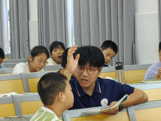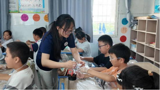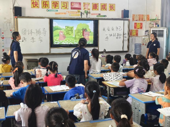 来到服务地后,大家逐一走上了讲台,给2-5年级小学生担任起班主任的职务,服务地同学们热情很高,看到各位“大学生”老师十分激动和好奇。出行前志愿者们还担心授课会冷场,实际授课时同学们很热情,举手十分踊跃,课堂氛围活跃。为了适应托管班各班学生的年龄特点,每日课后志愿者们都会总结当日优缺点,修改次日课程的教案内容,不断提升自己的课堂教学效果,不断激发学生的学习热情和创造性。仅仅两日的课程就让托管班同学们印象深刻,欢声不断。