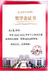 李文豪深知学习的重要性,两年综测第一,连续三年德育、智育素质排名双第一,多次荣获“一等奖学金”、“创新创业奖学金”、“精神文明奖学金”“突出才艺奖学金”。他的专业课成绩平均分90.07,英语类成绩平均分90,思政类成绩平均分90.69,三年来成绩稳步上升。