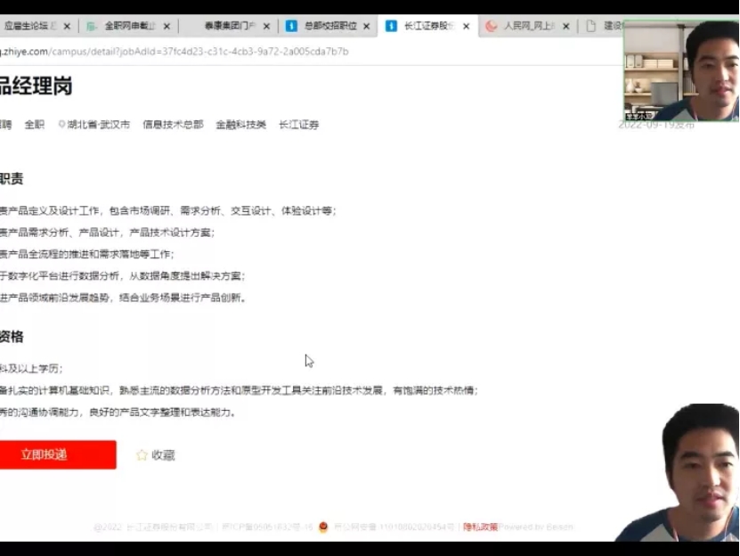 刘圣龙老师线上以长江证券校园招聘为例为23届专业毕业生进行就业指导