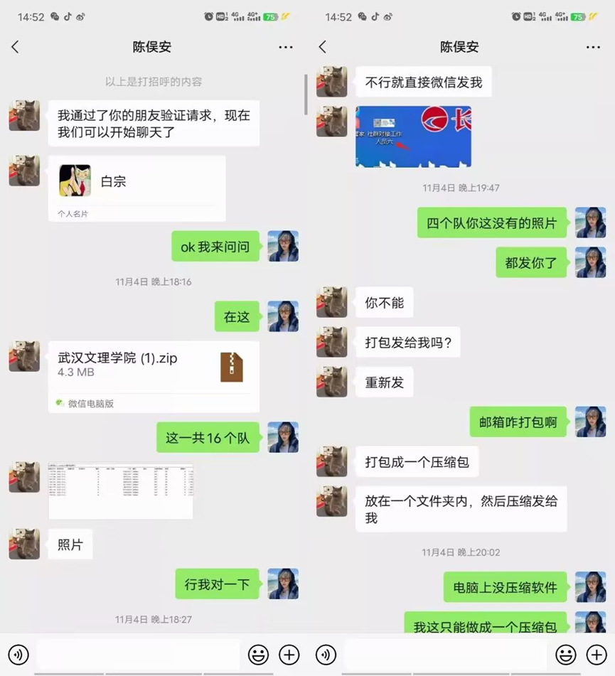 大赛在报名之际,为了让更多人了解和参与到比赛中来,我们采取进班宣传的方式,通过号召和鼓励,效果非常明显。随后我组建起了长江商报比赛报名群,大概有100多名同学参与。为了比赛的有序性效率,我组建了队长群,直接和队长们进行着比赛的沟通。