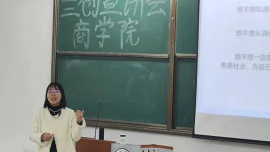 本次宣讲会首先由电子商务专业的刘丹老师向我们介绍三创赛。全国大学生电子商务“创新、创意及创业”挑战赛(简称三创赛)是在2009年由教育部委托教育部高校电子商务类专业教学指导委员会主办的全国性在校大学生学科性竞赛。根据教育部、财政部文件精神,三创赛是激发大学生兴趣与潜能,培养大学生创新意识、创意思维、创业能力以及团队协同实战精神的比赛。三创赛采用校赛、省赛和国赛三级竞赛体制,是激发大学生兴趣与潜能,培养大学生创新意识、创新思维、创业能力以及团队协同实战精神的学科性竞赛,对开展创新教育和实践教学改革、加强产学研之间联系发挥了积极作用,得到社会广泛认可。三创赛的价值主要在于:大赛促进教学,大赛促进实践,大赛促进创新,大赛促进育人。