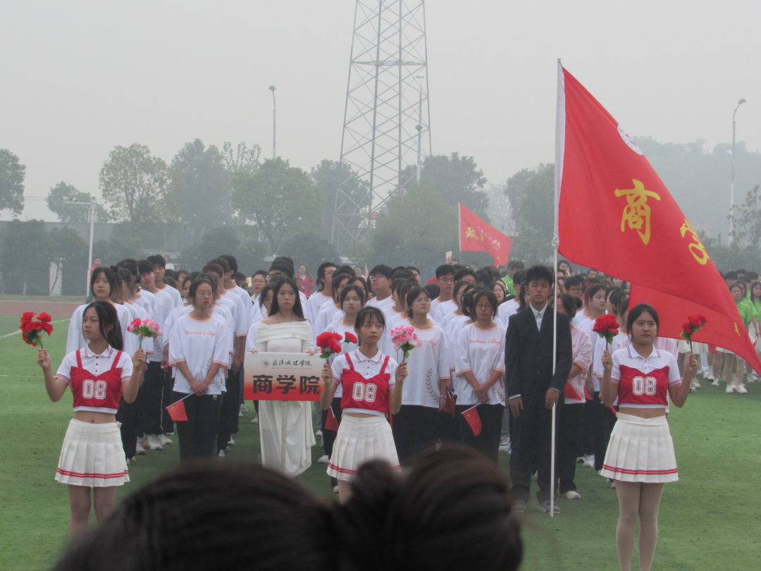 各学院入场后所有人起立,国旗护卫队迈着整齐铿锵的步伐,抛起鲜艳的五星红旗,拉开了运动会的帷幕,赛事在各个代表的发言后正式开始!