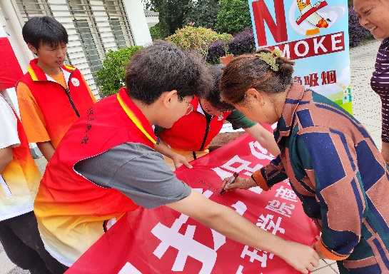 活动期间,志愿者们通过分发拒绝吸烟的宣传单和在社区解答居民们关于禁烟的问题,居民们十分配合,并在横幅上签上了自己的名字,让更多的居民产生拒绝吸烟的意识,也预示着我们此次活动的圆满进行。