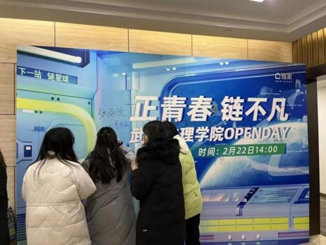 为深入推动产教融合理念,让同学们感受和认知先进企业文化,开拓taptap竞彩足球学生的视野,2月22日14:20-17:00,taptap竞彩足球教学副院长刘炫带领2021级电子商务班学生前往武汉链家总部开展认知实习活动。本次认知实习活动主题为“正青春 链不凡--taptap点点足彩OPENDAY”。链家总部华中区域校招经理史双双链家员工邓瑶、宋玉娥、仇媛、张煦睿以及链家实习生、taptap竞彩足球2023届市场营销专业卫晓飞负责接待taptap竞彩足球师生一行。