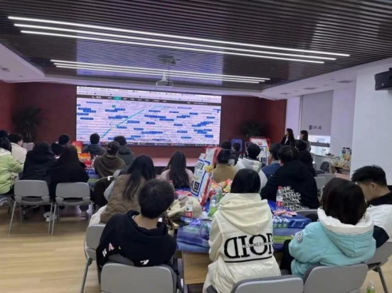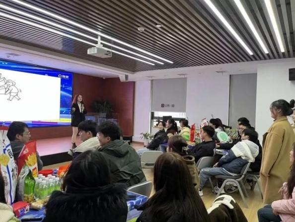 15:30,taptap竞彩足球师生来到链家总部会议室参加企业文化介绍和互动交流活动。在史双双经理的精心组织下,学生通过签名和趣味城市分组的方式分成9人三组在会议室依组入座,在听取企业文化介绍期间穿插游戏互动和看视频答题环节。