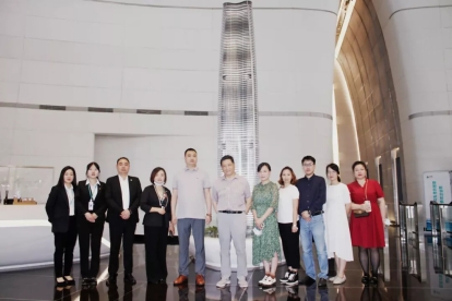 在雅生活华中区域总裁曹久辉等企业领导的陪同下,刘可风校长一行重点参观了绿地中心46楼展厅的党建中心和城市展厅,了解学生实习工作环境和企业发展建设史。