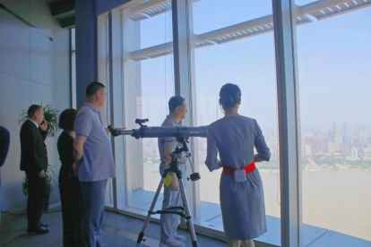 引导员向刘可风校长一行介绍雅生活华中区域党建中心,俯瞰壮阔江景