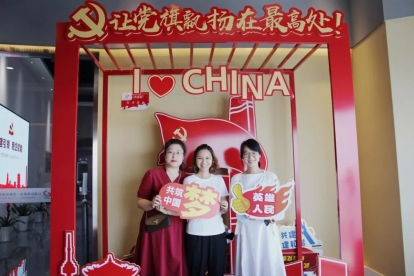 徐永辉书记与刘丹、余芬老师在党建中心打卡留念