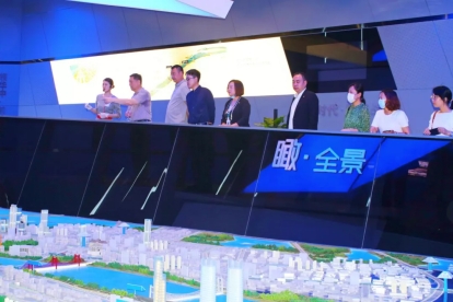刘可风校长一行在展厅俯瞰江景