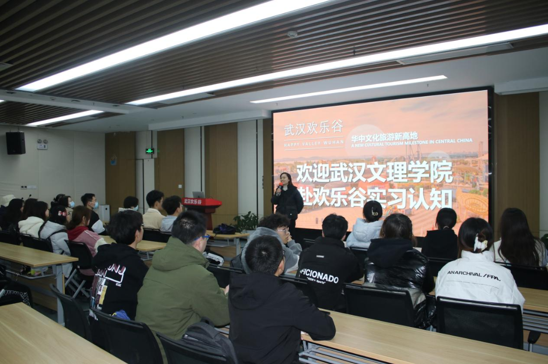 郭泽华老师强调:欢乐谷是武汉众多高校的就业基地,为青年人的成长和发展提供了众多空间和机遇。随着郭则华老师的深入的介绍,学生们更加了解了武汉欢乐谷的岗位需求和人才培养计划。