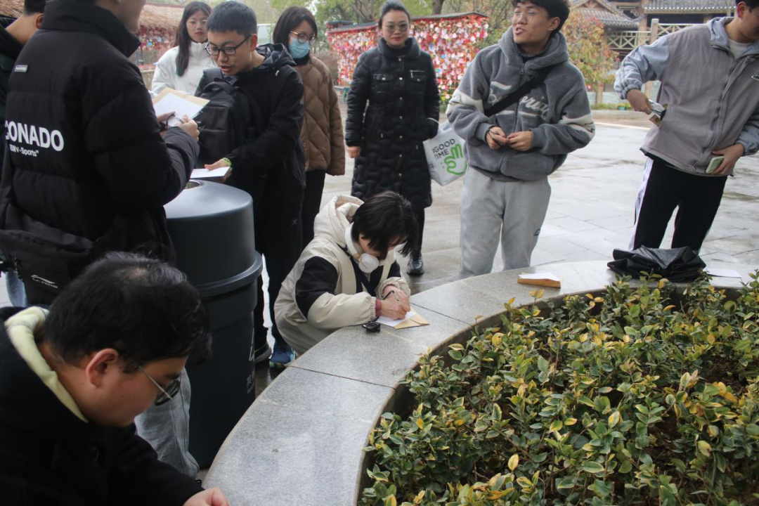 在参观结束后。同学们在欢乐谷下发的明信片上写下了本次认知实习的感受以及对一年之后的自己实践工作的祝福和鼓励并依次投入欢乐谷的邮筒。