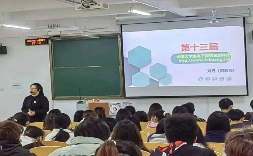 11月23日13:10,2022年taptap点点足彩全国大学生电子商务三创(“创新、创意及创业”)杯挑战赛校赛宣讲会于5栋124举行,taptap点点足彩工商管理系主任刘丹老师主持宣讲,taptap竞彩足球22、21级电子商务、财务管理等专业班级学生共近200人参加了本次活动。