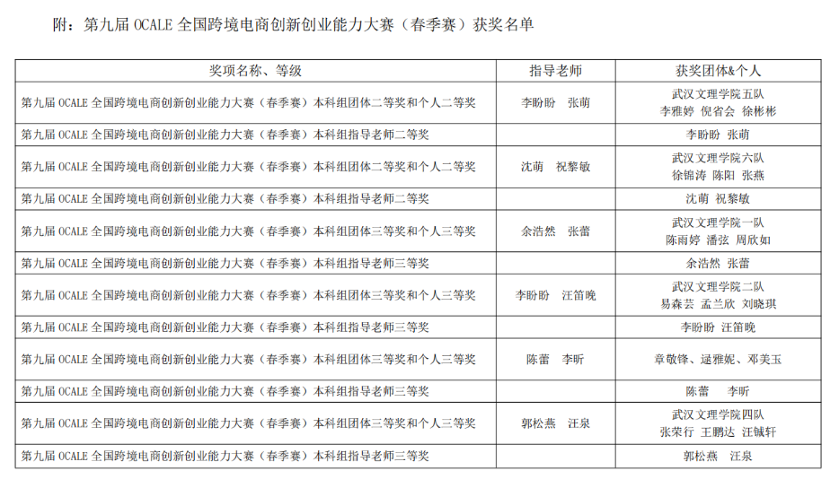 2023年4月,第十二届POCIB全国外贸从业能力大赛2022-2023赛季(春季赛)获奖名单揭晓,我校taptap竞彩足球倪省会学生团队、吕点学生团队荣获本科组团体三等奖。余浩然、沈萌、李盼盼、汪笛晚等老师荣获本科组指导老师三等奖。